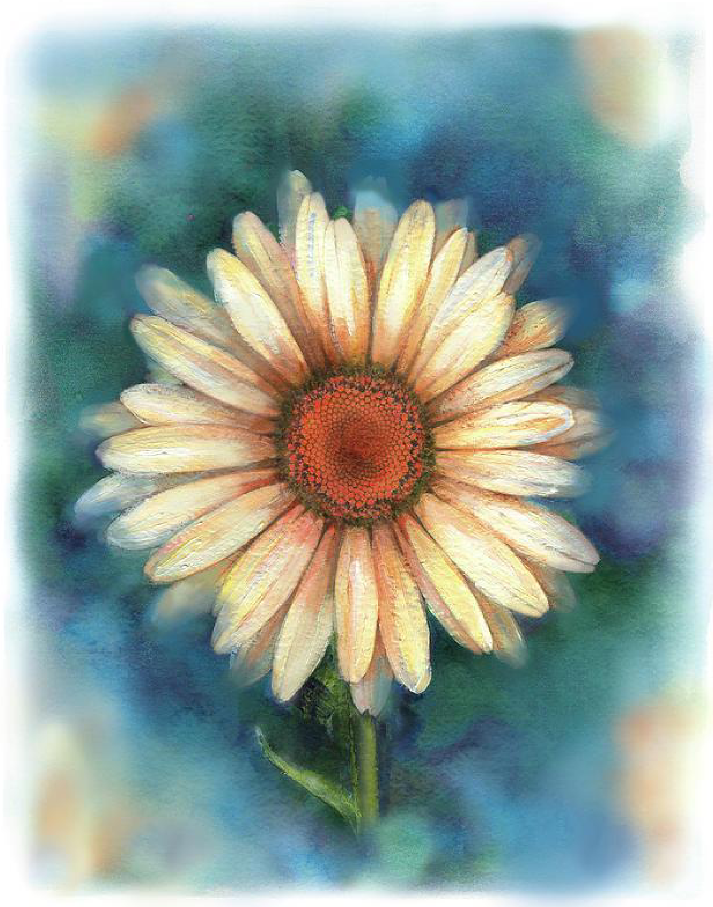 Agora, a vida surge como uma margarida, com suas pétalas brancas em roda, todas conectadas ao centro solar amarelo. Todas sendo parte de um grande centro que se expande em todas as dimensões e surge como uma flor infinita, bela, viva e brilhante. A flor é você, é sua alma que está sempre contigo, e você é agora uma pétala, apenas uma pétala. Você é o todo que surge em diversas formas, em diversas dimensões e mundos. Você é vasta e bela e a flor é magnífica. É a flor de Deus, é você. É você.”